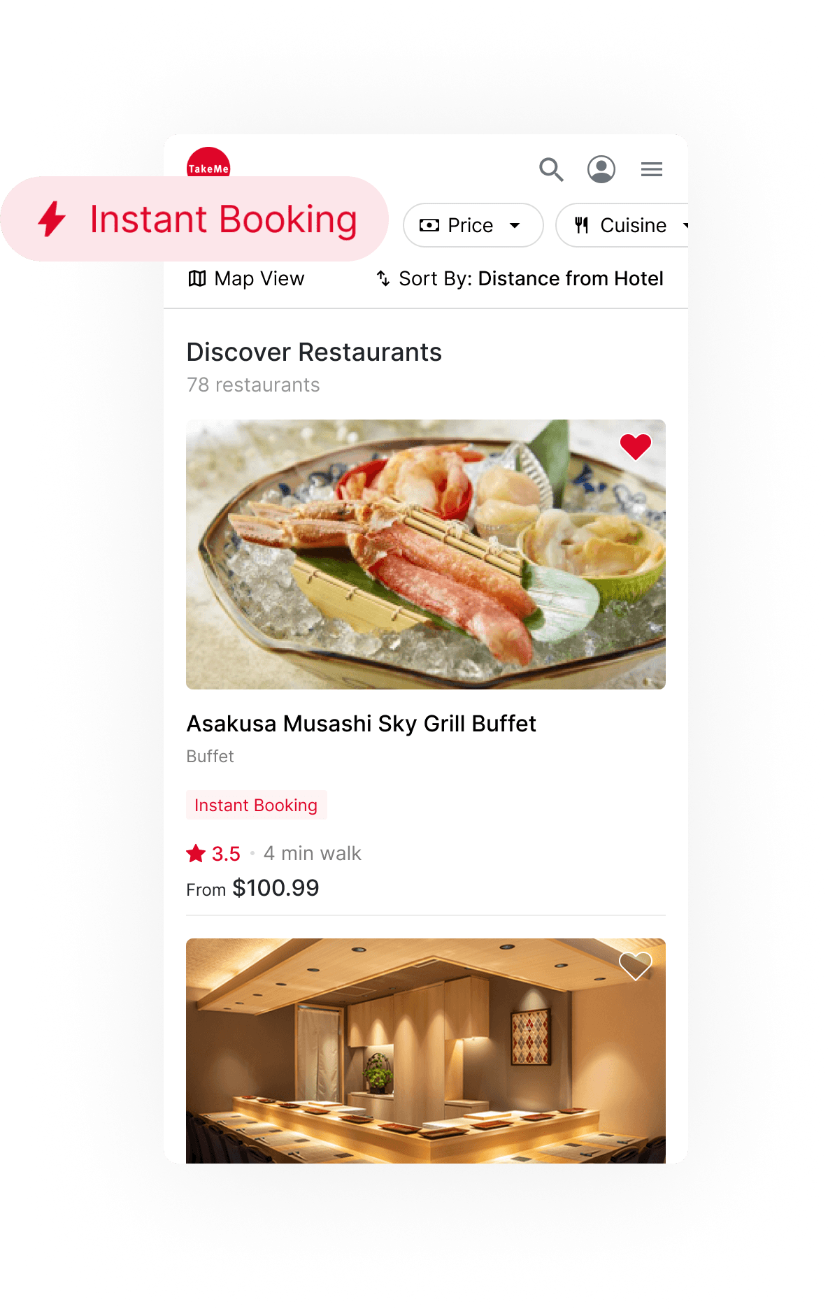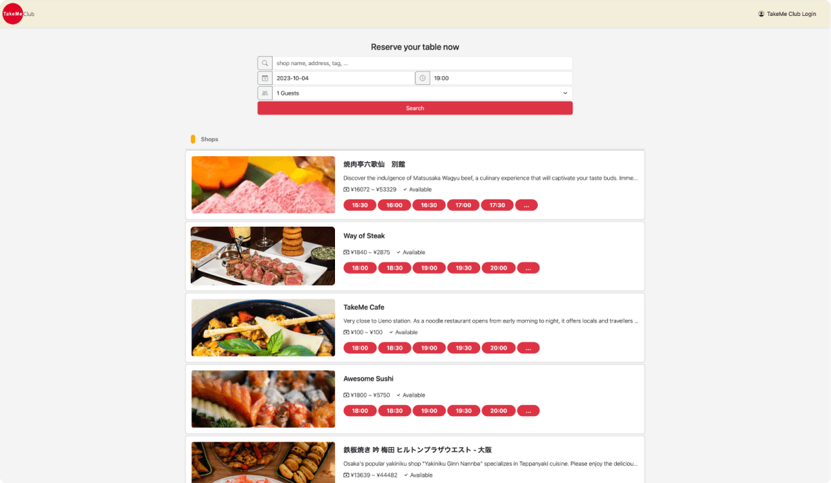 TakeMe is a restaurant booking platform targeted for travelers visiting Japan.